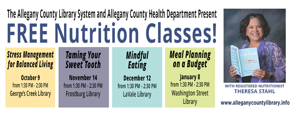 Classes are held from 5 to 6 PM on the ground floor of the Allegany County Health Department at 12501 Willowbrook Road, Cumberland, MD. To learn more and register, email [email protected] or call 301-759-5270.